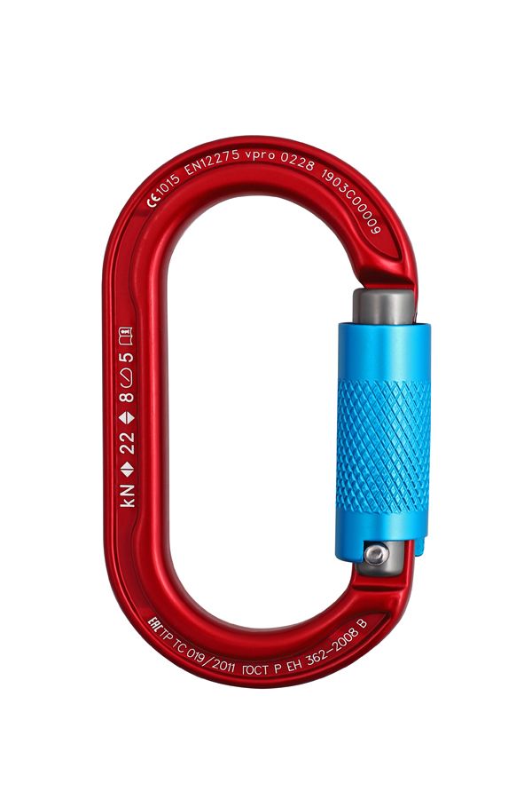 Овальная форма позволяет равномерно нагружать карабин и удобно поворачивать при соединении с другими составляющими страховочной цепи. Карабин применяют, когда важно отсутствие перекосов или заклинивания.