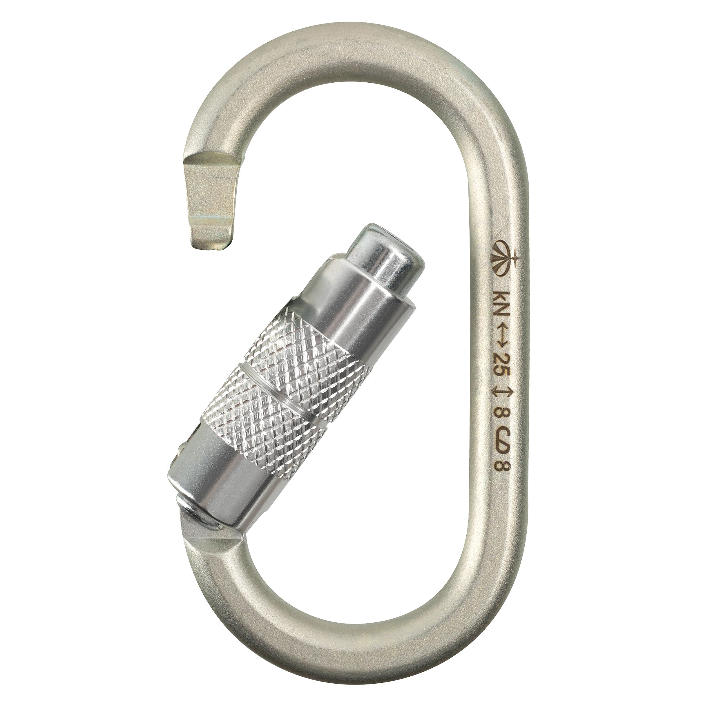 Стальной карабин овальной формы. Может применяться для организации самостраховки, станций, присоединения страховочных устройств и т.д. Симметричная форма карабина исключает отклонение от основной оси при нагрузке, что особенно важно при работе с блок-роликами и устройствами с двумя симметричными щечками. Тип защелки "keylock" облегчает выщелкивание, автоматическая муфта ускоряет работу с карабином. Может использоваться в скалолазании, альпинизме, спелеологии и промышленном альпинизме.