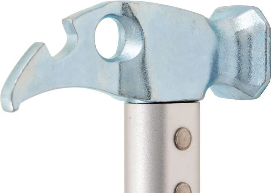 Геометрия клюва разработана с учетом специфики извлечения якорных крючьев. В клюве расположена выемка под гайку 13 мм. Плоская центральная часть может быть использована для фиксации скального молотка на обвязке/привязи пользователя с помощью магнитной защелки. Также в центральной части расположено отверстие диаметром 14 мм для позиционирования молотка с помощью карабина на обвязке/привязи пользователя.