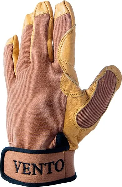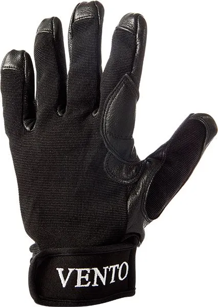 Защита ладони и пальцев обеспечивается благодаря двойному слою натуральной кожи. Верхняя часть перчатки выполнена из дышащего, эластичного нейлона. Манжеты из тонкого неопрена с застежкой на липучке позволяют регулировать обхват кисти руки.