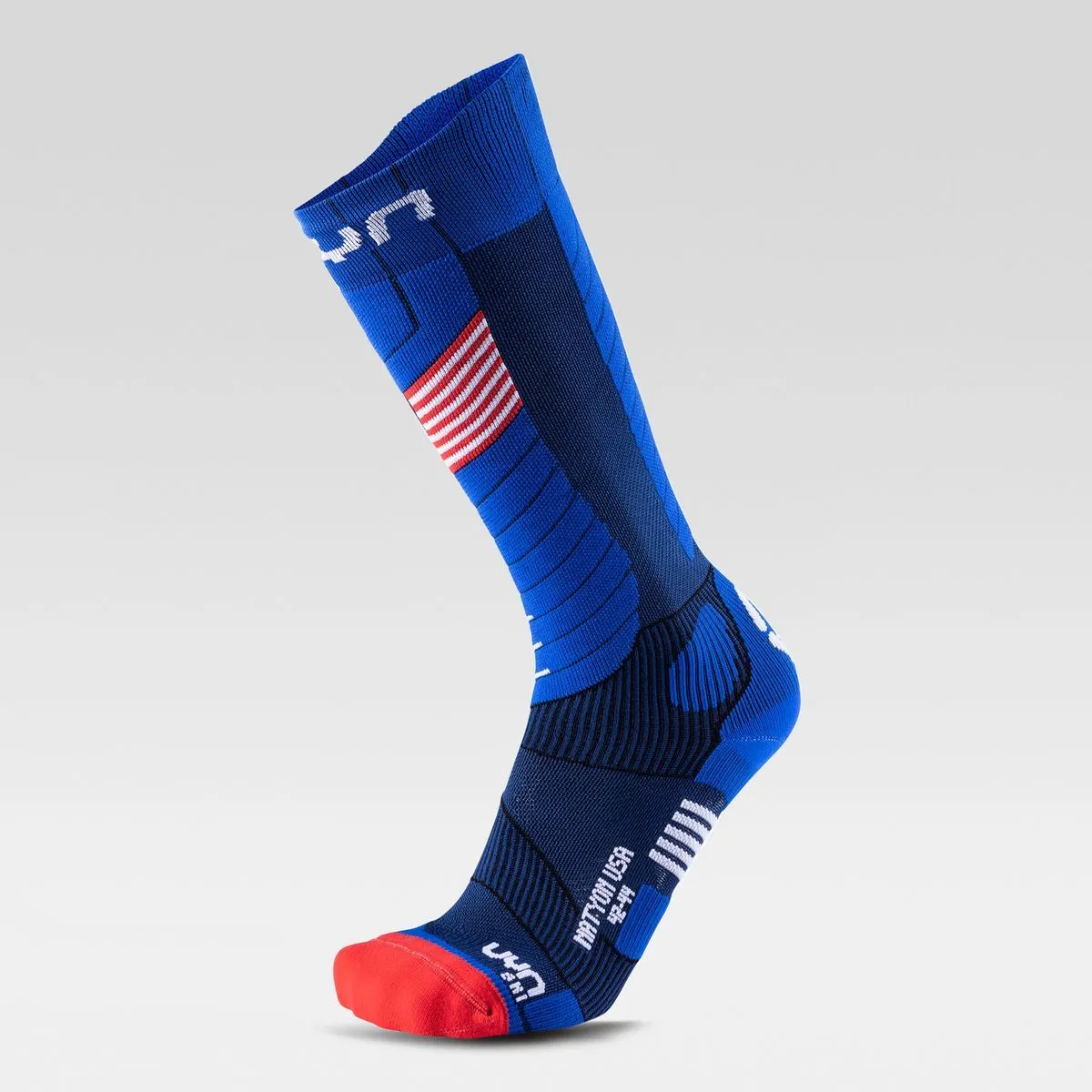 Динамичный волнообразный дизайн характерен для лыжных носков Natyon, обеспечивая повышенную поддержку голени. Трехмерная защита в стратегических зонах верхней части, голени, лодыжки и ахиллова сухожилия поглощает удары. Использование высокотехнологичной пряжи Texlyte Nano в стратегические области пятки, носка и стопы увеличивает способность впитывания влаги.
