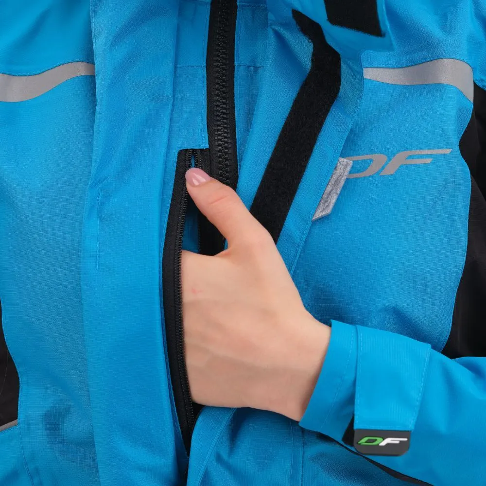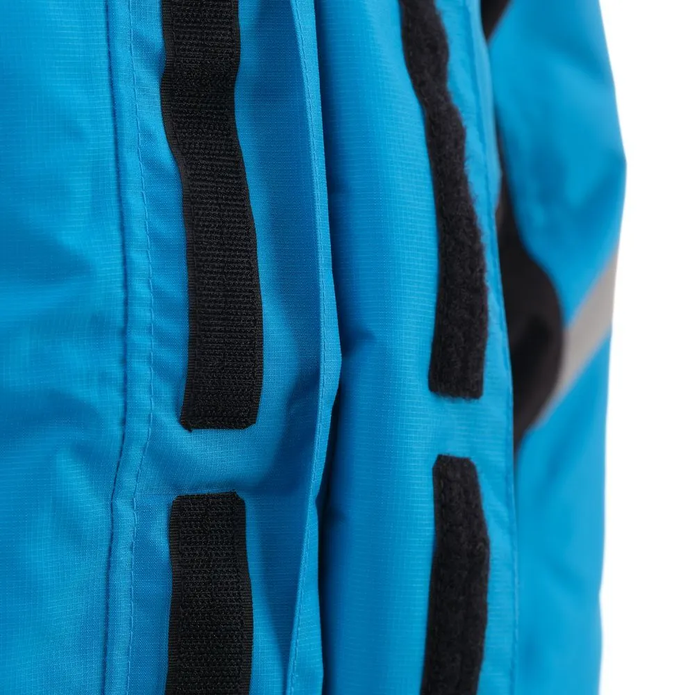 Дождевики Dragonfly подходят как мужчинам, так и женщинам. Синяя куртка EVO удобна в использовании и чистке, весит всего 0,8 кг – можно взять с собой в дорогу. Рекомендуем приобрести ее в комплекте с мембранными штанами. К куртке прилагается транспортировочная сумка под дождевой комплект "куртка + штаны", которая крепится на пояс, в том числе и в поездке.