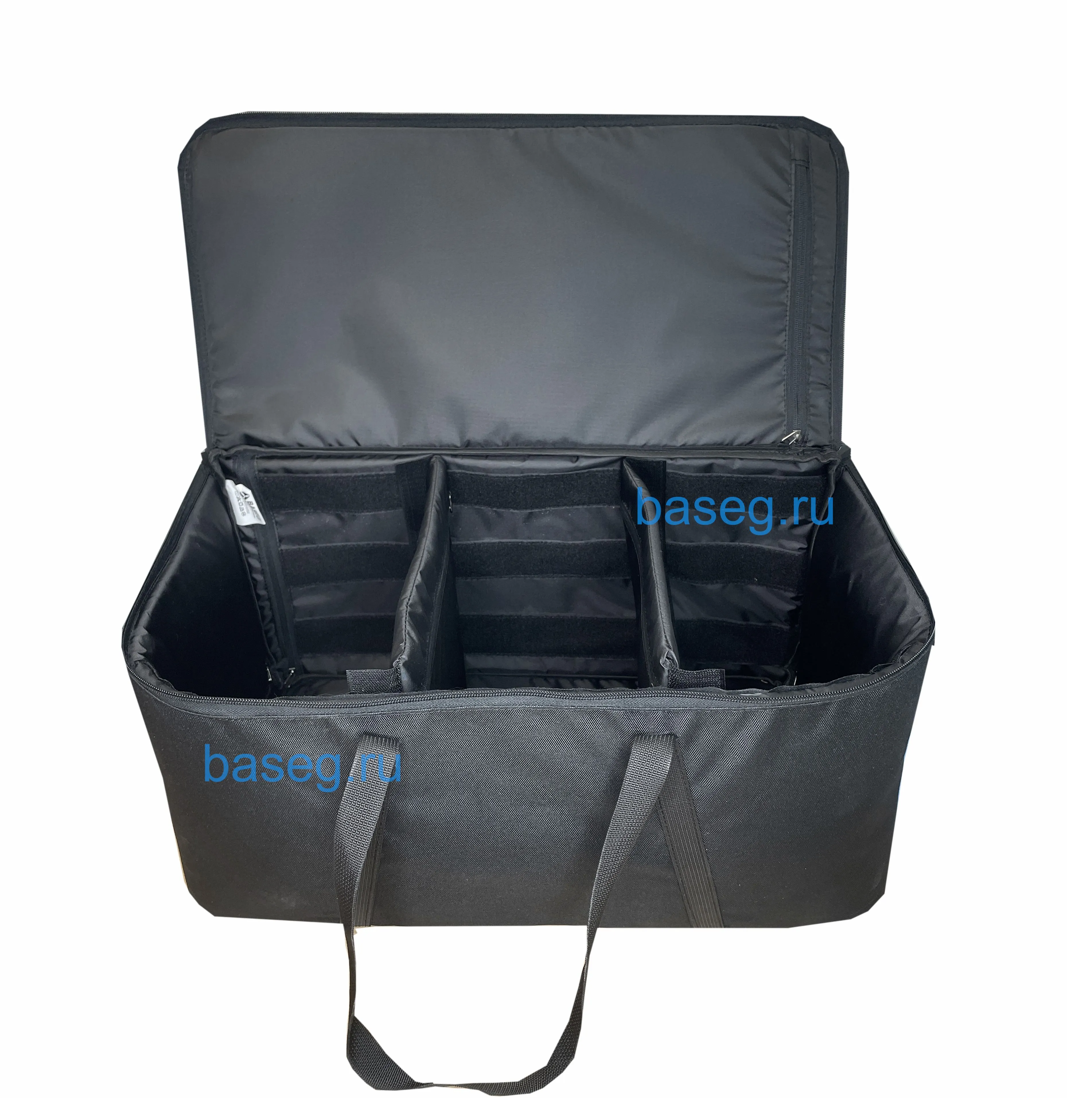 Текстильный бокс, сумка для хранения и перевозки. Две багажных петли для переноски, молния на 3/4 крышки для удобства использования. На крышке есть карман для маркировки содержимого бокса.