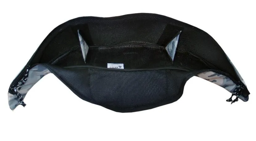 Сумка под стекло на снегоход Polaris WT, IQ. Отлично подходит для хранения навигатора, телефона и массы других принадлежностей. Сумка надежно крепится на панель с помощью ленты Velcro и двустороннего скотча (в комплекте не идет). Внутри сумка изготовлена из мягкого сетчатого материала. Пространство сумки разделяют две перегородки, снаружи есть небольшой карман на молнии. Стенки сумки уплотнены ППЭ 5-7mm