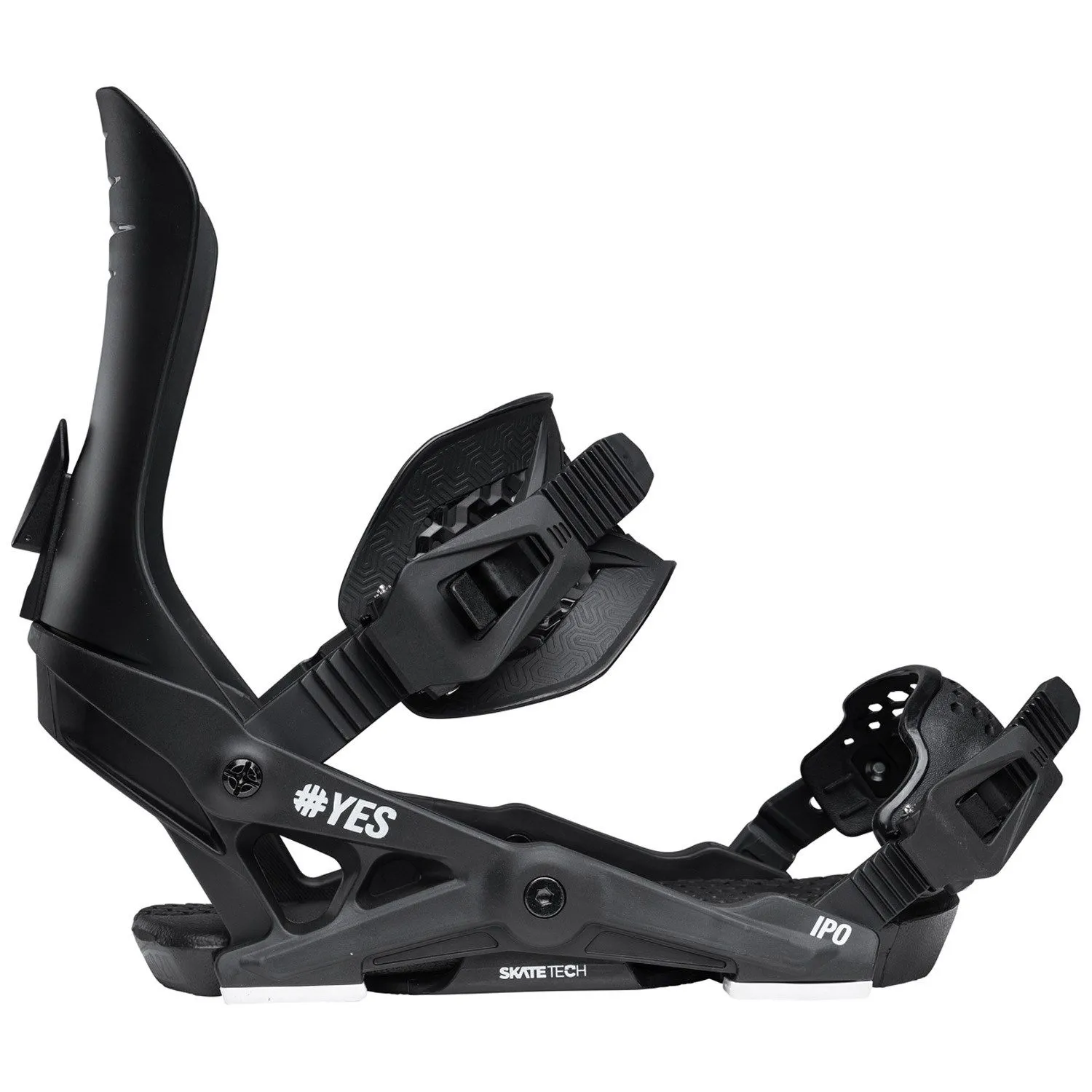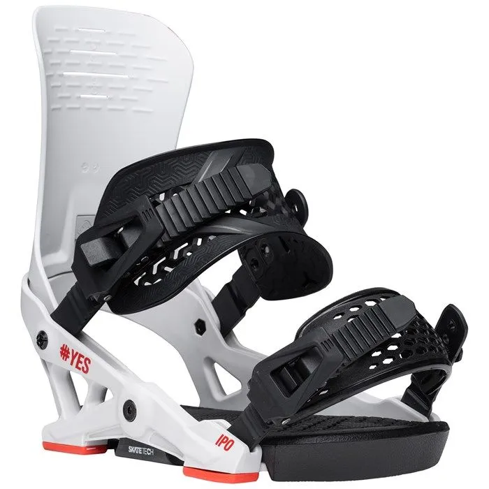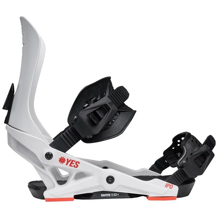 Крепления для сноуборда YES Ipo - универсальные крепления для All-mountain катания, которые подойдут начинающим и прогрессирующим райдерам. После 10 лет превосходной истории модели, Ipo получило впечатляющее обновление как в дизайне так и в конструкции. Прочная нейлоновая база, усиленная стекловолокном в сочетании с технологией Skate-Tech обеспечивает превосходную отзывчивость и плавную передачу усилия. Асимметричные стрепы с системой Flip-it позволяют регулировать степень поддержки, достаточно просто поменять их местами.