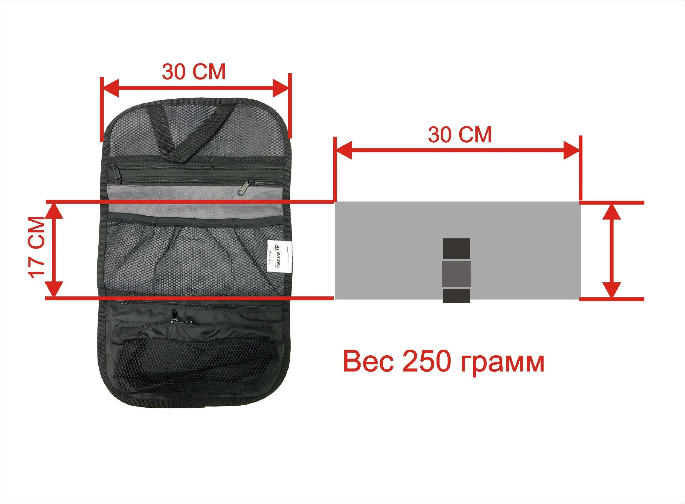 Пенал и карманы для средств гигиены.