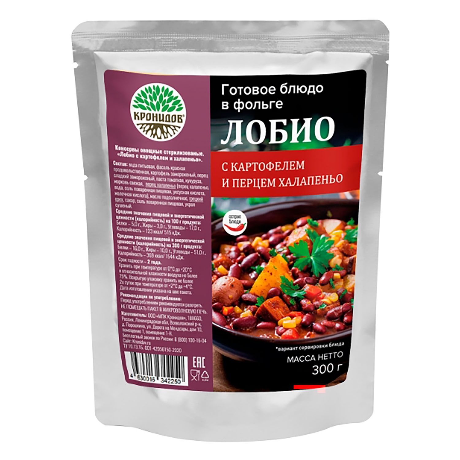 Лобио с картофелем и халапеньо от "Кронидов" - блюдо, вдохновленное грузинской кухней и сочетающее в себе красную фасоль, томаты и грецкий орех. Обладает оптимальной пищевой и энергетической ценностью и внесет разнообразие в ваш походный рацион.