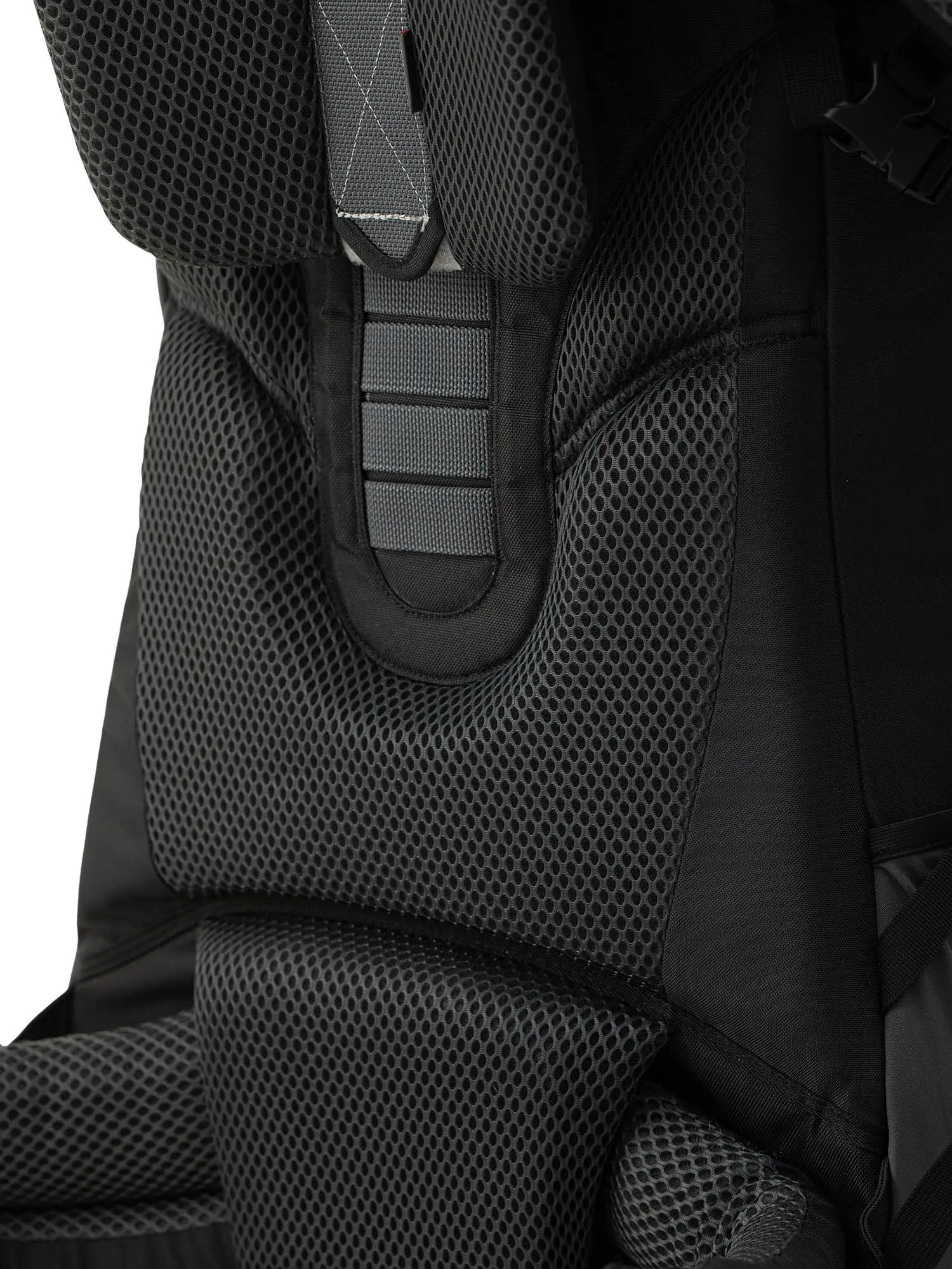В верхней части спинки рюкзака есть выемка, чтобы он не ограничивал движений головы и не мешал смотреть вверх и по сторонам.