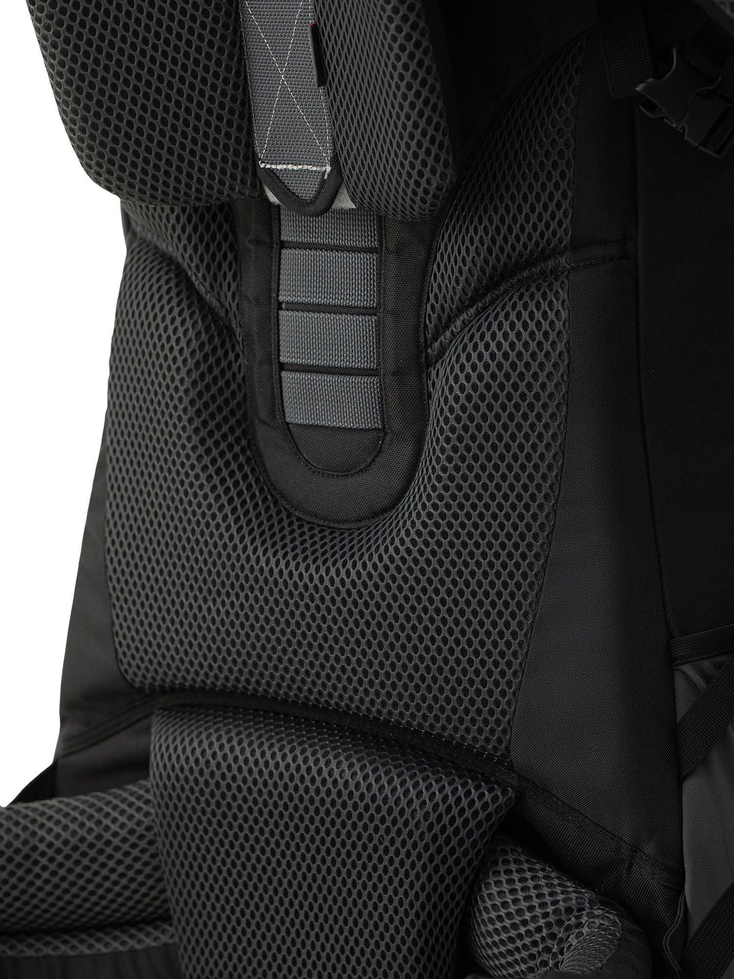 Внутри спинки рюкзака находится замкнутая V-образная рамка из трёх алюминиевых лат, которая не деформируется даже под большой нагрузкой. Она помогает разгрузить плечи и перенести вес на бёдра, делая переноску рюкзака более комфортной.