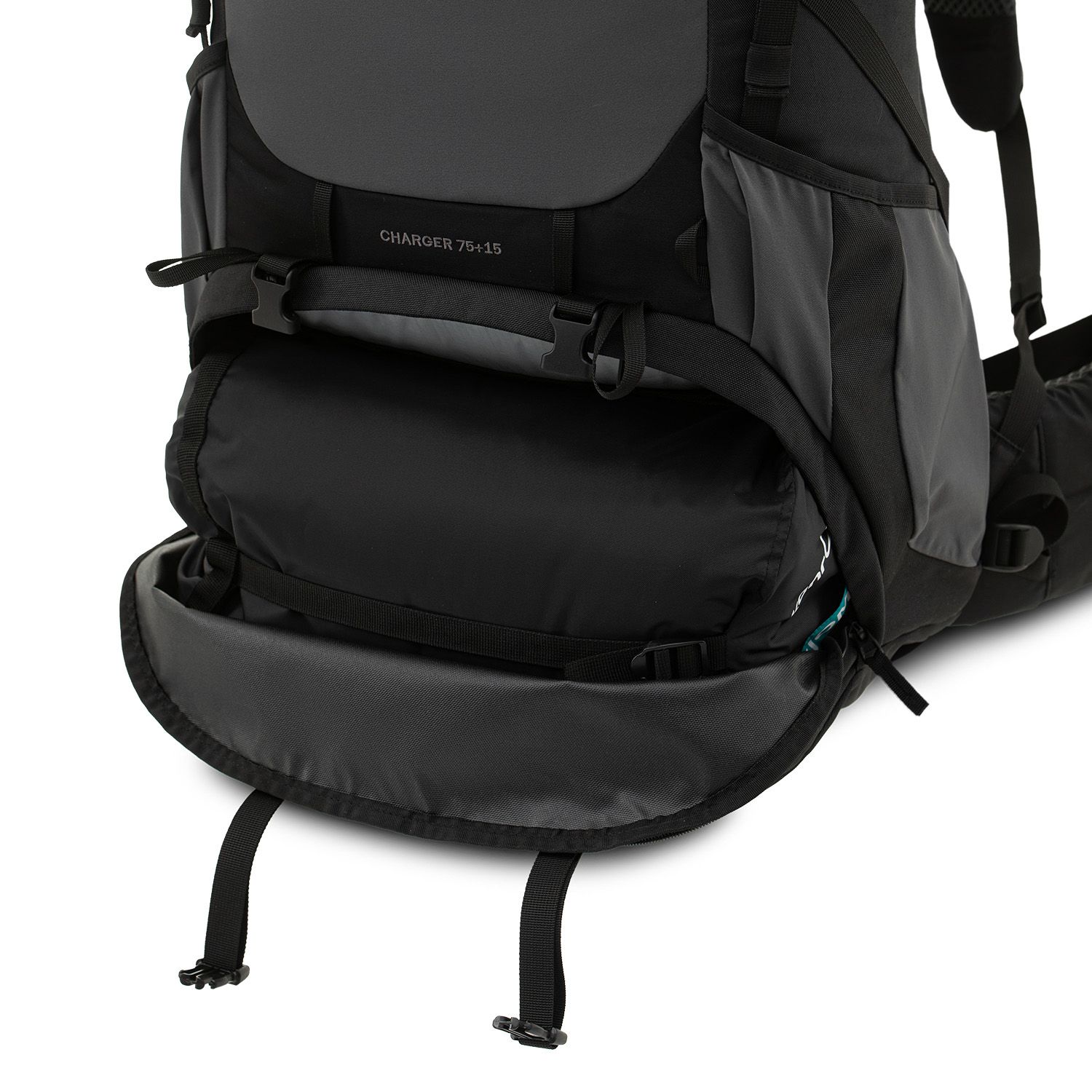Нижняя часть рюкзака отделена от основного объёма перегородкой на молнии. Нижнее отделение обычно занято спальным мешком и тёплой одеждой для бивака.
