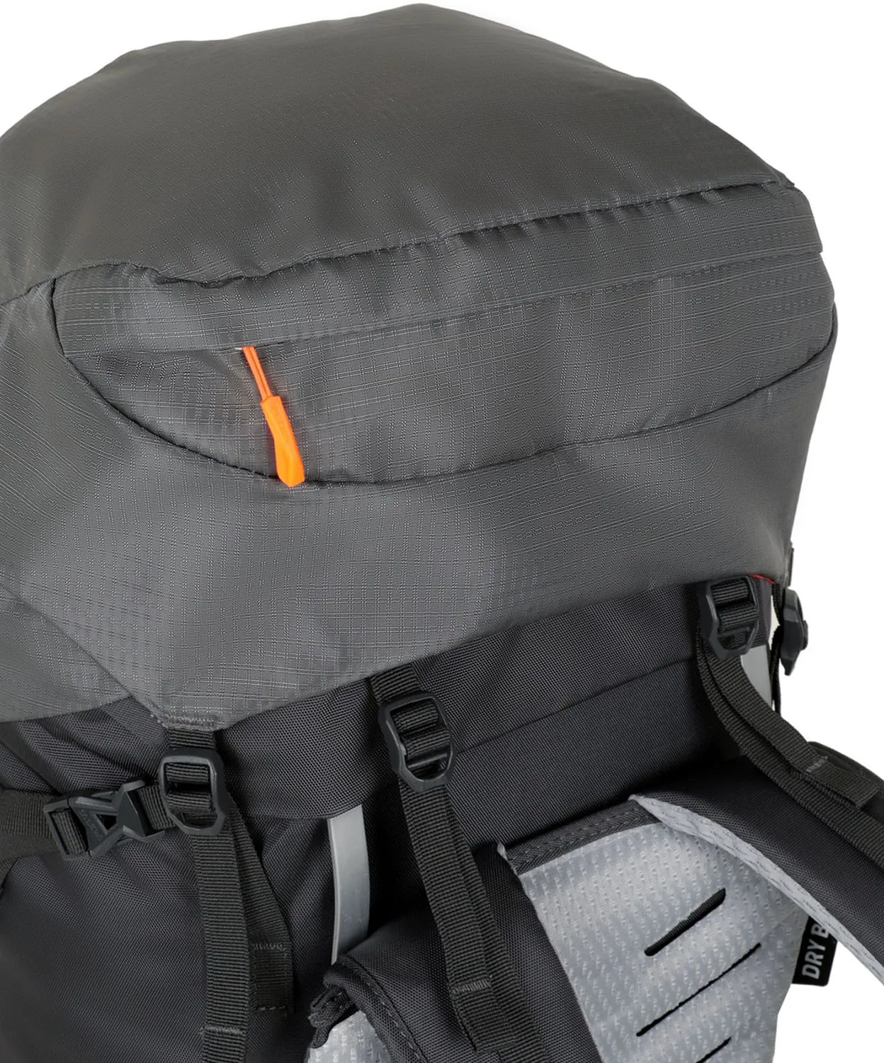 Регулируемый по высоте верхний клапан с карманом на молнии и карабином для ключей.