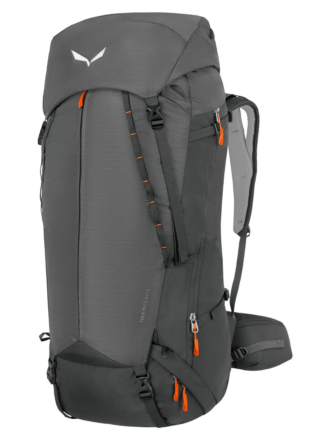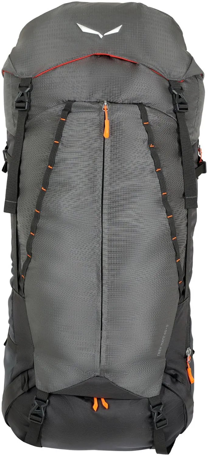 Salewa Trek Mate 65+5 - удобный и прочный треккинговый рюкзак объемом 65 литров (с возможностью увеличения объема на 5 литров) для многодневных альпийских маршрутов. Подвесная система Dry Back Custom позволяет легко отрегулировать высоту спинки, а также плечевые лямки и поясной ремень, под ваши индивидуальные параметры для более плотной и комфортной посадки рюкзака. Особый крой двойных плечевых лямок обеспечивает свободу движения и хорошую вентиляцию, а мягкий формованный поясной ремень гарантирует плотное прилегание и хорошую передачу нагрузки на бедра. Задняя панель с системой Dry Back Contact из пеноматериала ЭВА с 3D-канальной вентиляцией обеспечивает хорошую воздухопроницаемость, что снижает температуру в месте контакта рюкзака со спиной и уменьшает потоотделение. Salewa Trek Mate 65+5 изготовлен из легкого износостойкого полиэстера плотностью 420D с усилением Double Ripstop, дно выполнено из более плотного нейлона 750D. Все ткани обработаны водоотталкивающей пропиткой без ПФУ. В больших боковых карманах достаточно места для запасной одежды или дуг для палатки. Имеется быстрый и легкий фронтальный доступ к основному отделению и возможность увеличить объем еще на 5 литров с помощью регулируемого по высоте верхнего клапана — очень полезно, если вы планируете носить большую треккинговую палатку. Рюкзак Trek Mate имеет надежный карман на молнии для ценных вещей и несколько вариантов внешних креплений для треккинговых палок, а также удобные петли дейзи-чейн и ремни для крепления коврика под рюкзаком для экономии места внутри. Полностью совместим с питьевой системой, а также с держателем для фляги Salewa и чехлом для смартфона Salewa Smartphone Pouch. В комплект входит накидка на рюкзак от дождя.