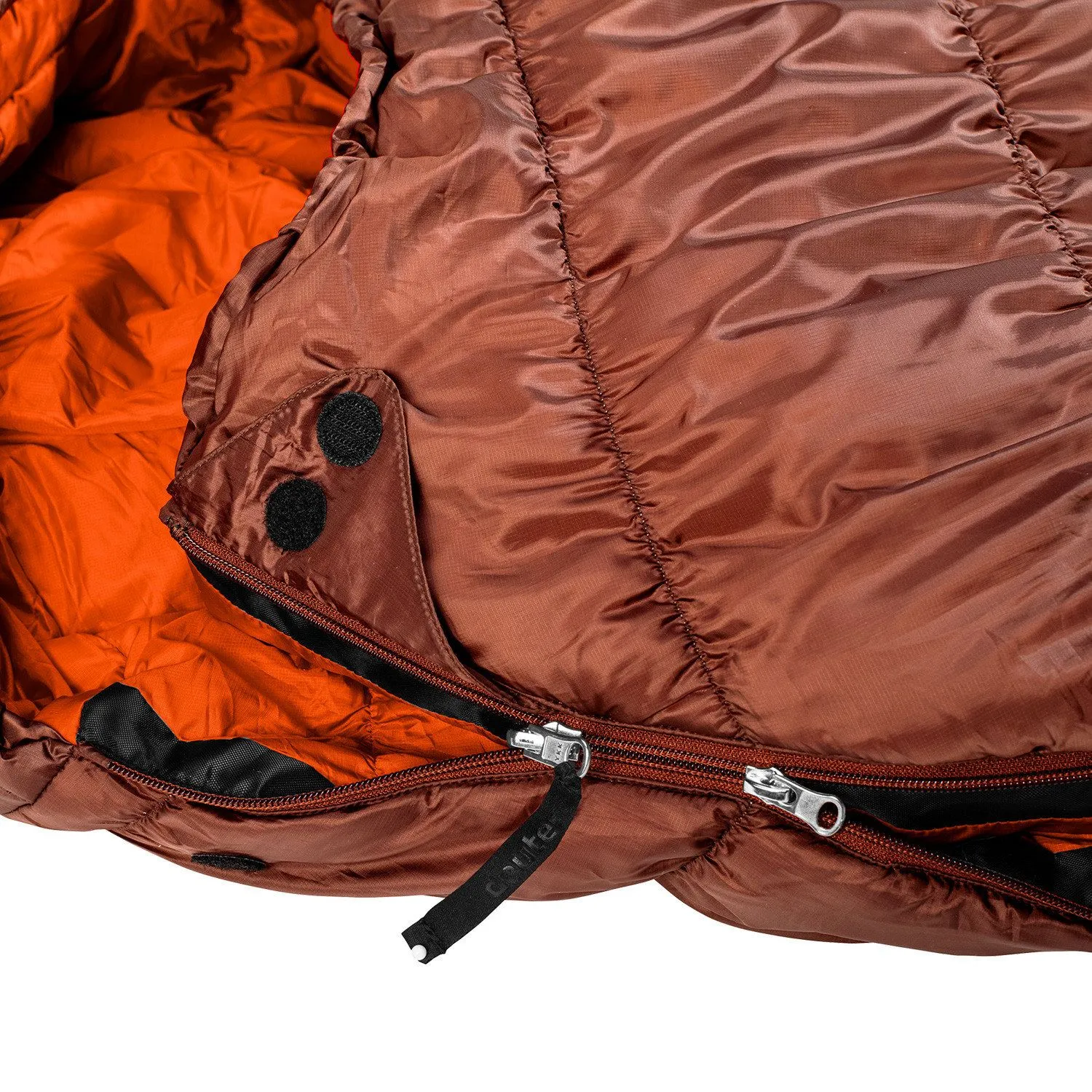 Двухсторонний замок для удобной регулировки, вентиляции и состегивания с другим спальником.