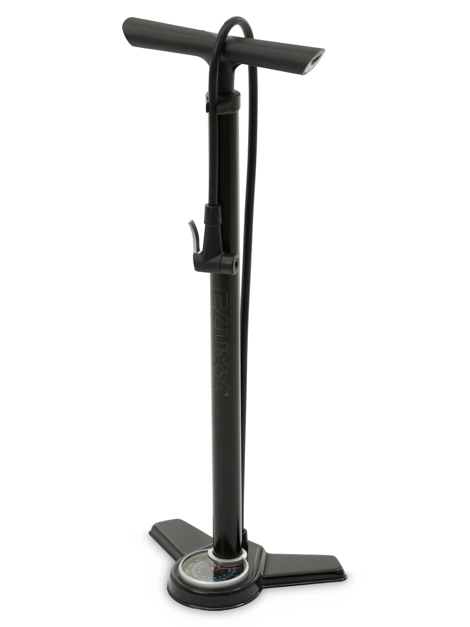 CLUXX Intense 200 — напольный насос для домашних и выездных велосипедистов, ценящих точность и надёжность. Подходит для шоссейных, гравийных и горных велосипедов благодаря максимальному давлению до 160 PSI (11 бар).