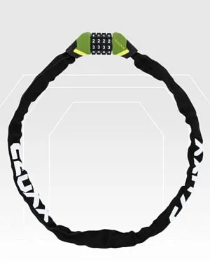 Цепь из закаленной стали с квадратными звеньями, армированная титаном, устойчива к распиливанию и взлому. Cтальная система Steel Ball Combo защищает замок от взлома и выдергивания. Замок имеет кодовый механизм закрытия. Вам не придется возить с собой ключи и бояться их потерять.