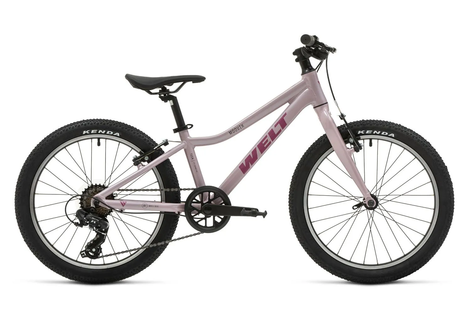 Велосипед, предназначенный для детей в возрасте от пяти до девяти лет, с оборудованием начального класса Shimano, 7 скоростей. Технические особенности: легкая алюминиевая рама (сплав 6061, частично скрытая проводка, компенсация швов, прямой рулевой стакан, кареточный стакан BSA), жесткая алюминиевая вилка (сплав 6061), двойные алюминиевые обода (под AV ниппель), ободные механические тормоза YX-C22 Alloy V-Brake, защита цепи. Подходит для прогулочного катания в городских условиях и по ровным проселочным дорогам.