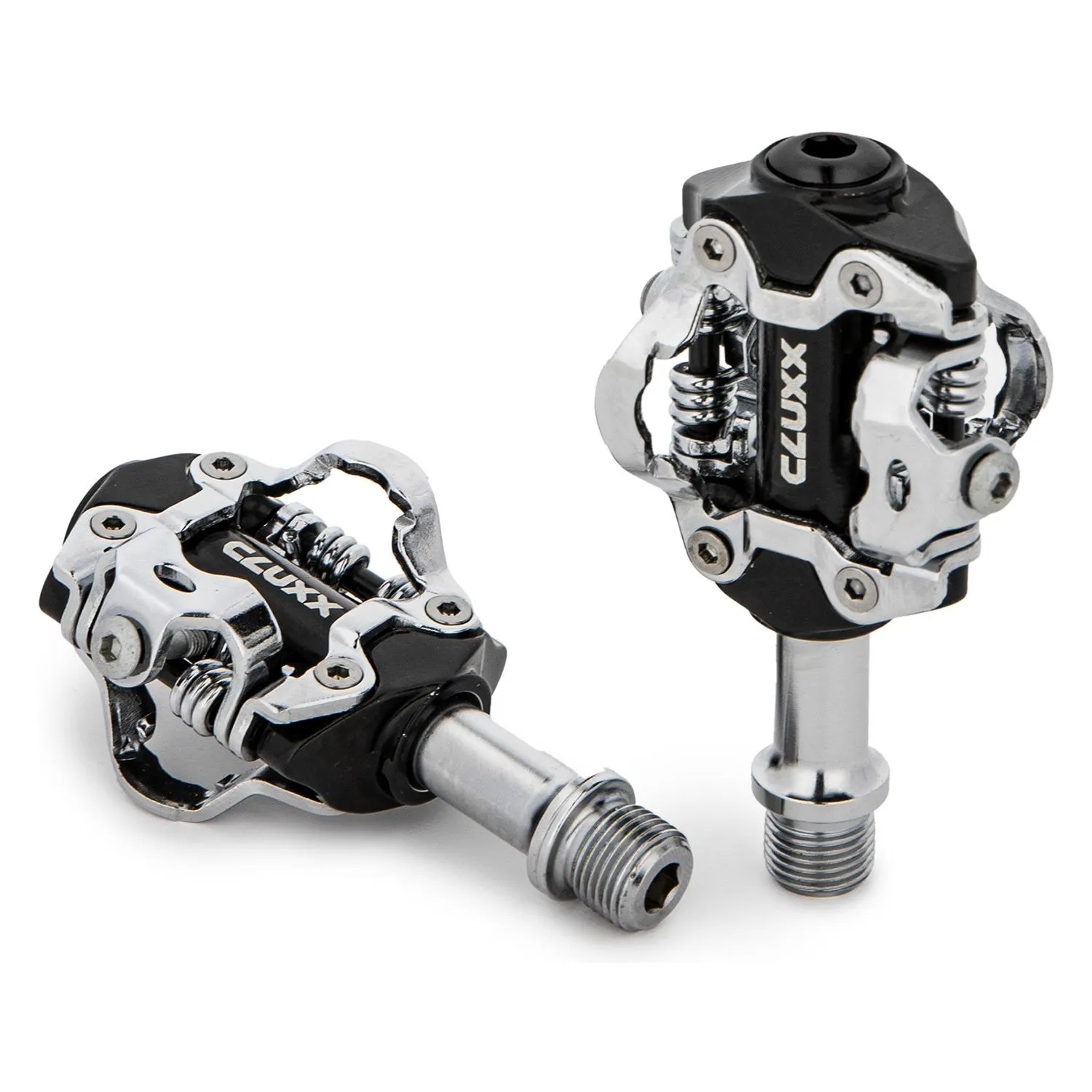 Контактные педали Cluxx Rally 100 предназначены для горных или гравийных велосипедов. Изготовлены из легкого и прочного алюминия. Ось из хромомолибденовой стали прочнее, жестче и легче стальной, а высокоточная ЧПУ-обработка добавляет ей долговечности. В комплекте с педалями также поставляются шипы SPD.
