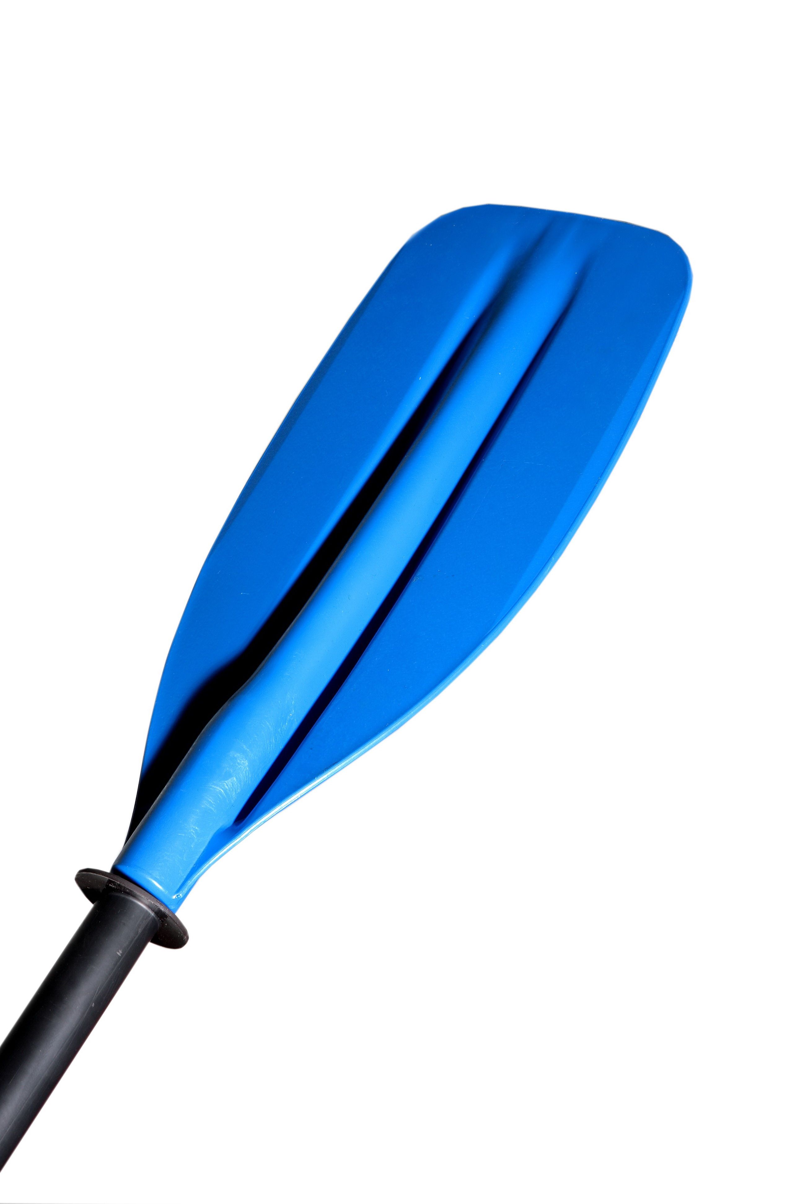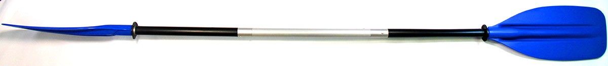 У этого трёх секционного весла используются те же лопасти, что и у нашего весла разбирающегося на две части. Боковые стороны лопасти имеют небольшой угловой загиб, что стабилизирует поведение весла при проводке и управляющих гребках. Для придания жесткости в средней части весла расположены волнообразные канавки.